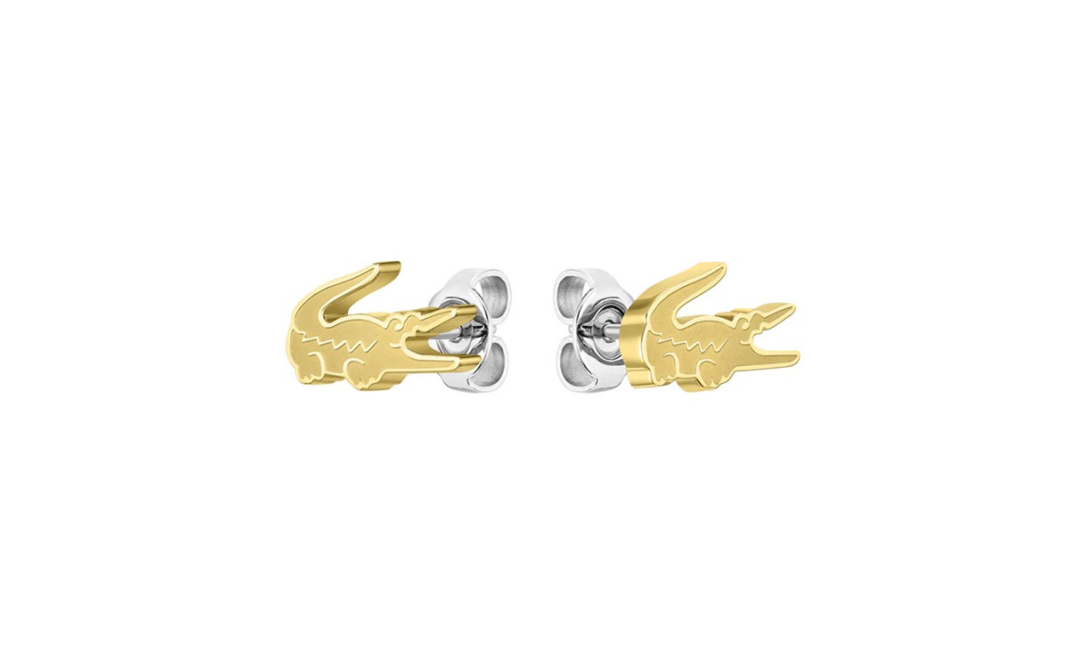 Boucles d'Oreilles Lacoste avec Motif Crocodile en Acier Doré – Élégance Sportive et Tendance