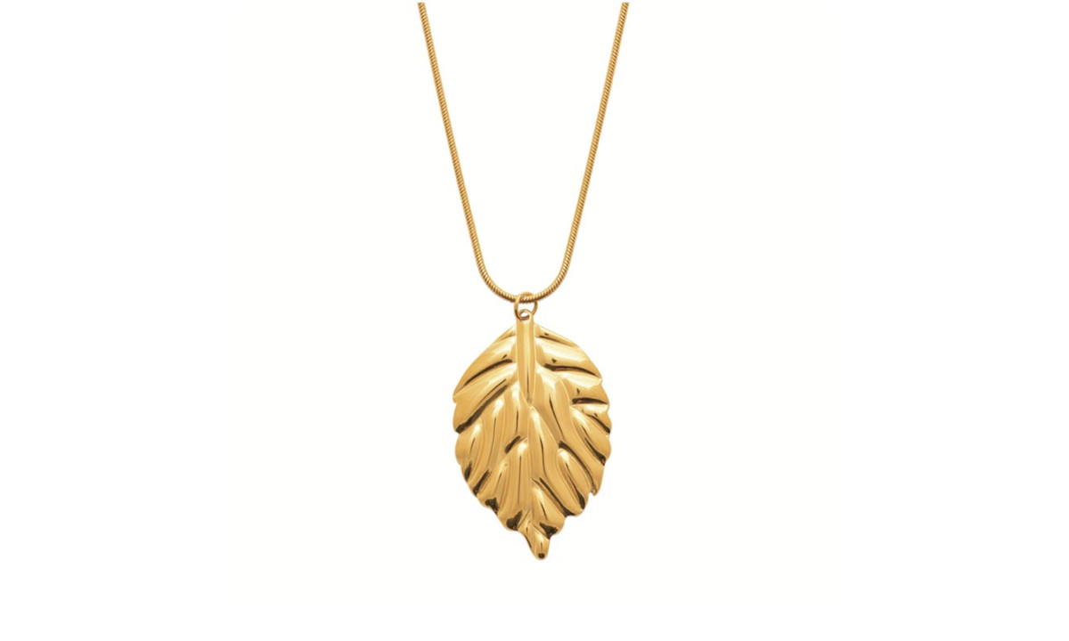 Ce collier délicat met en valeur un pendentif en forme de feuille finement travaillé. Ses nervures gravées avec précision révèlent toute la finesse et l’élégance de la nature, sublimées par l’éclat chaleureux de l’acier doré.