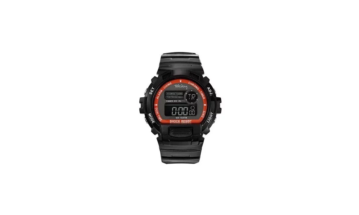 Montre TEKDAY, cadran rond LCD avec tour orange, bracelet en plastique noir